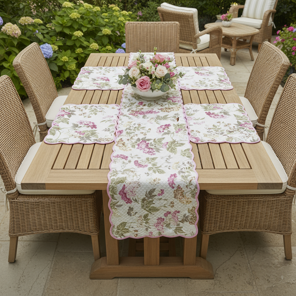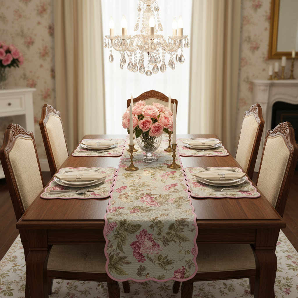 - Authentic Craftsmanship: Inspired by romantic French toile, vintage chinoiserie, and porcelain patterns, each Bloom Collection handcrafted runner features motifs such as paisley lilies, botanical roses, hydrangeas, leaves or birds, and is finished with a scalloped edge, showcasing timeless designs with contemporary elegance.