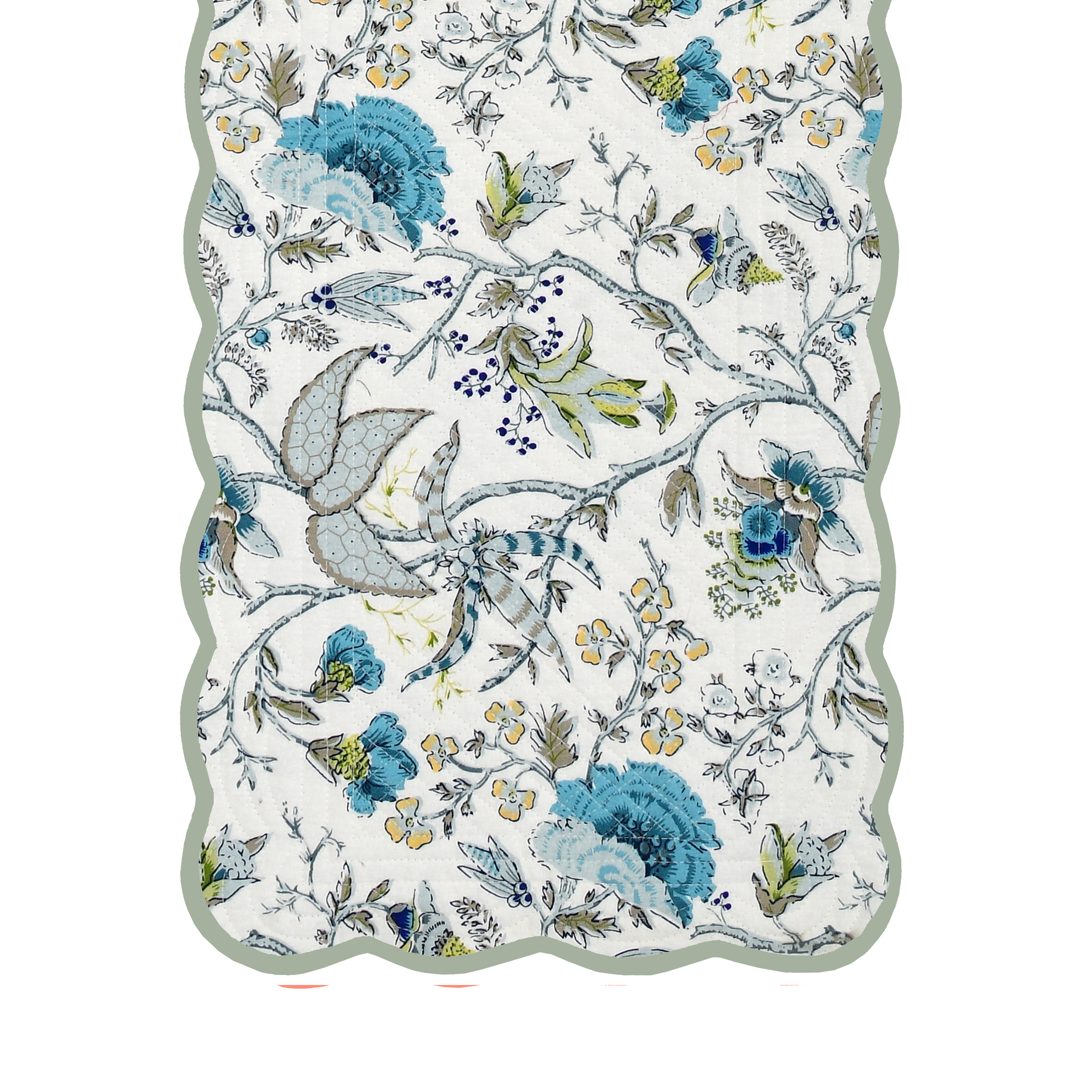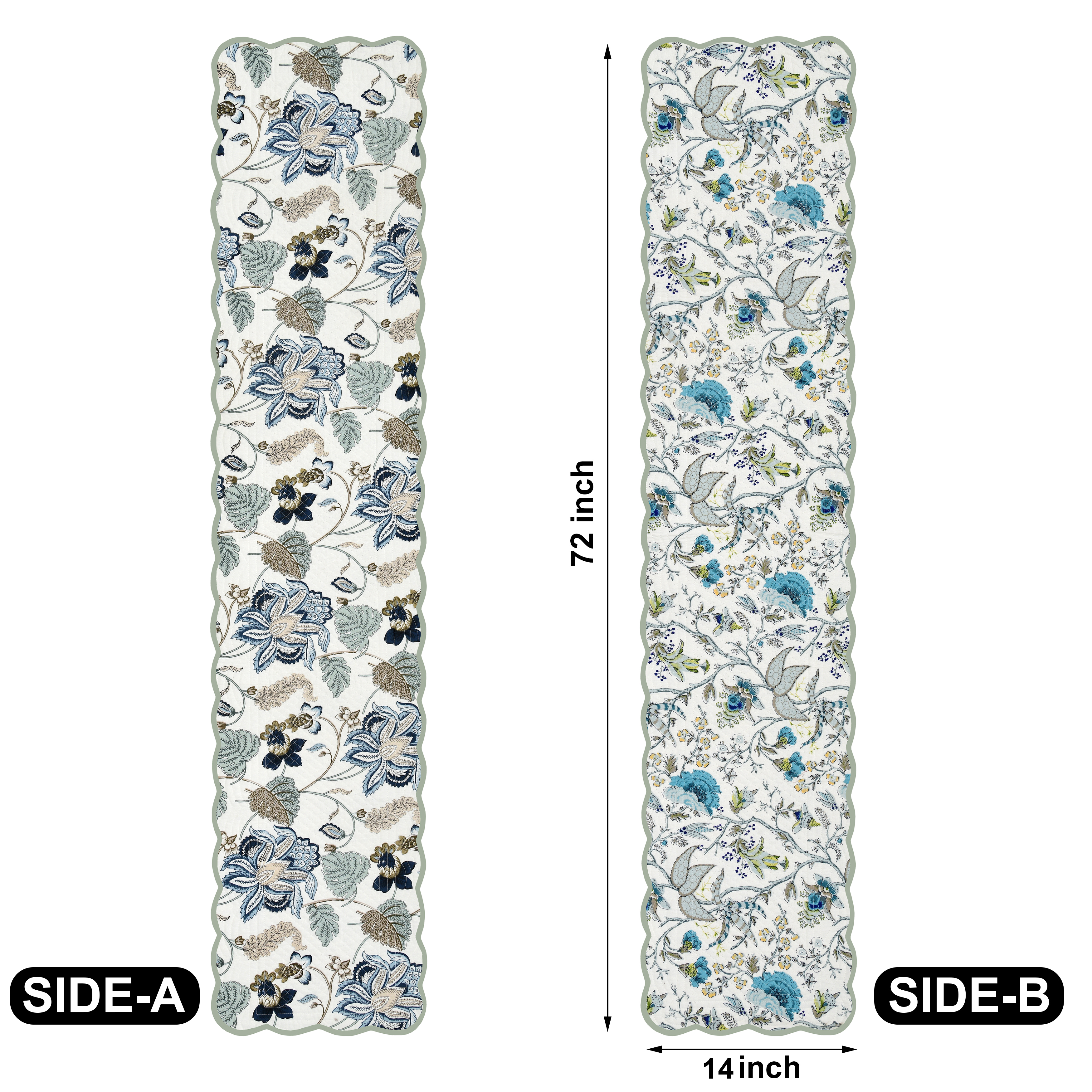 • Authentic Craftsmanship: Inspired by romantic French toile, vintage chinoiserie, and porcelain patterns, each Bloom Collection handcrafted runner features motifs such as paisley lilies, botanical roses, hydrangeas, leaves or birds, and is finished with a scalloped edge, showcasing timeless designs with contemporary elegance.