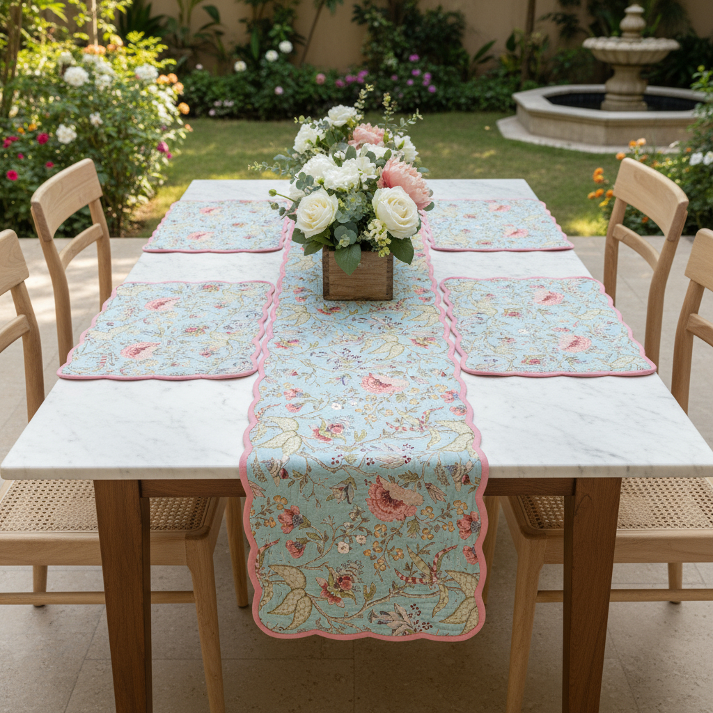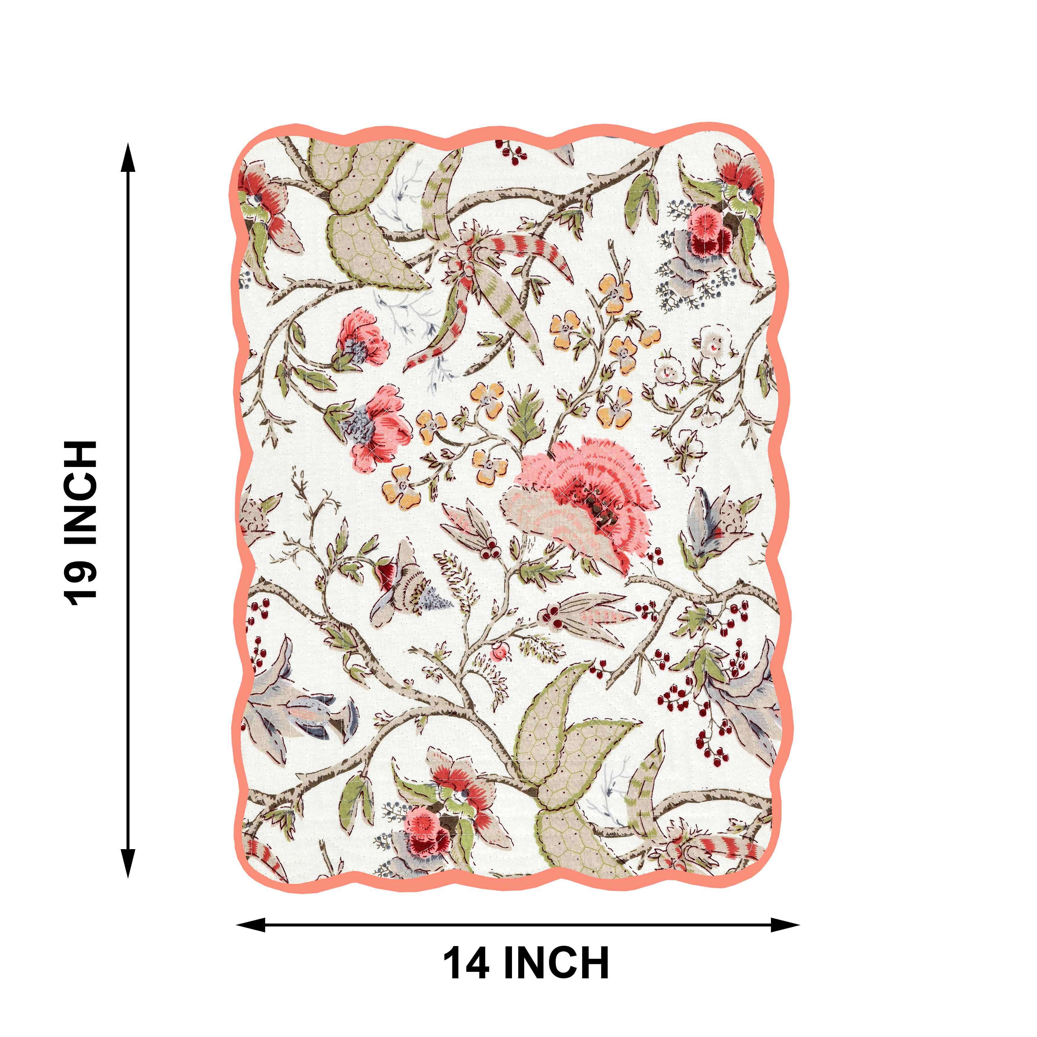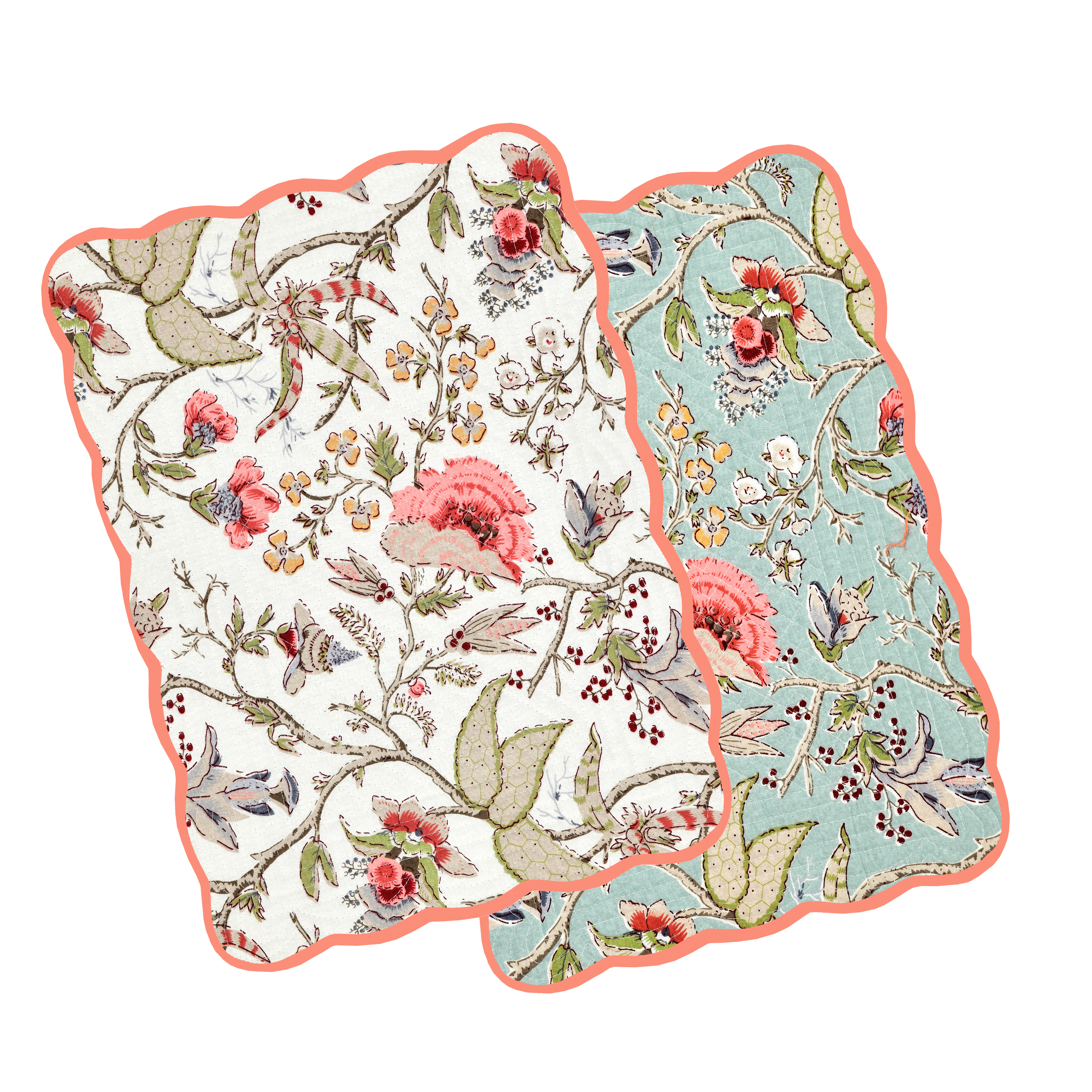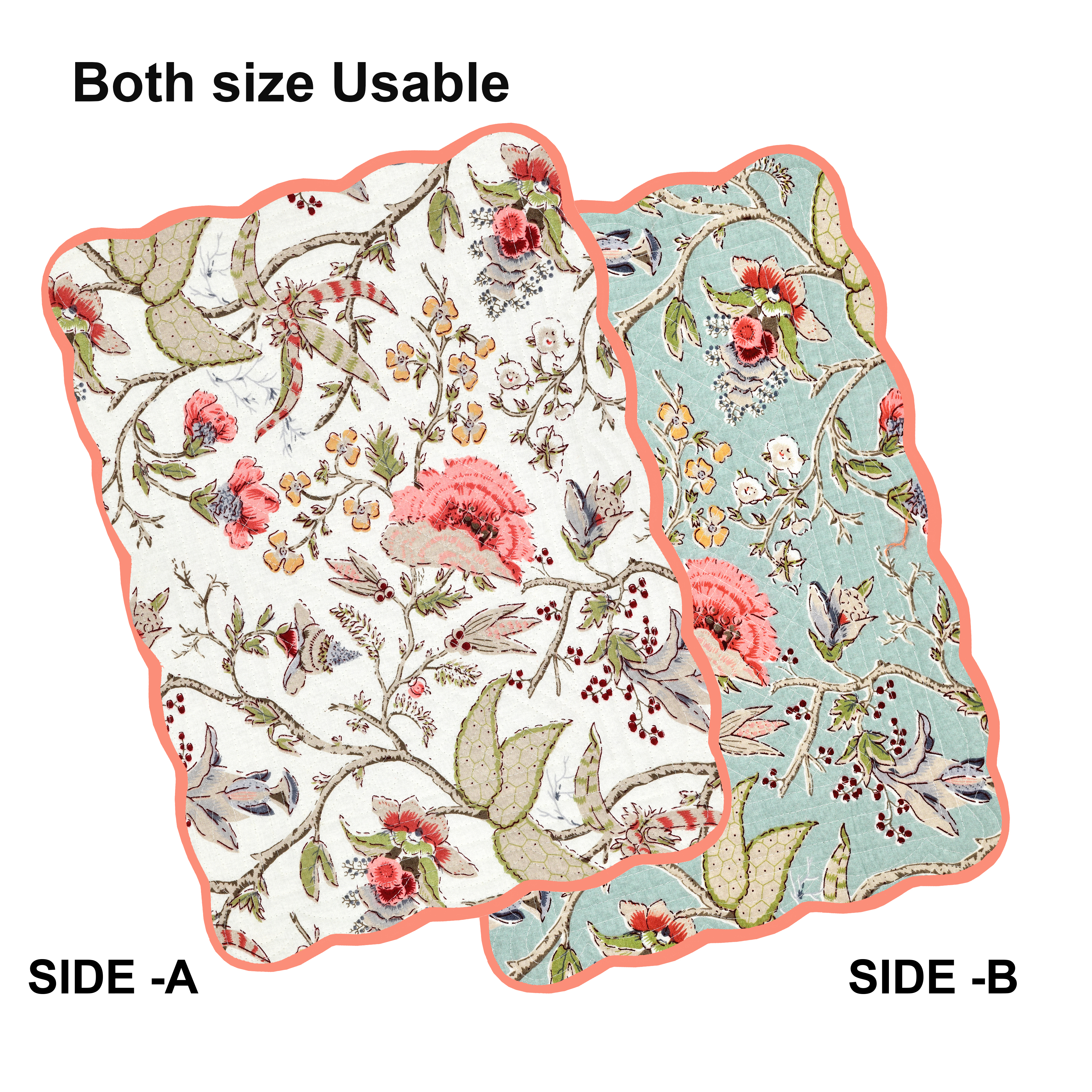 - Authentic Craftsmanship:Inspired by romantic French toile, vintage chinoiserie, and porcelain patterns, each Bloom Collection handcrafted placemat features motifs such as paisley lilies, botanical roses, hydrangeas, leaves or birds, and is finished with a scalloped edge, showcasing timeless designs with contemporary elegance.