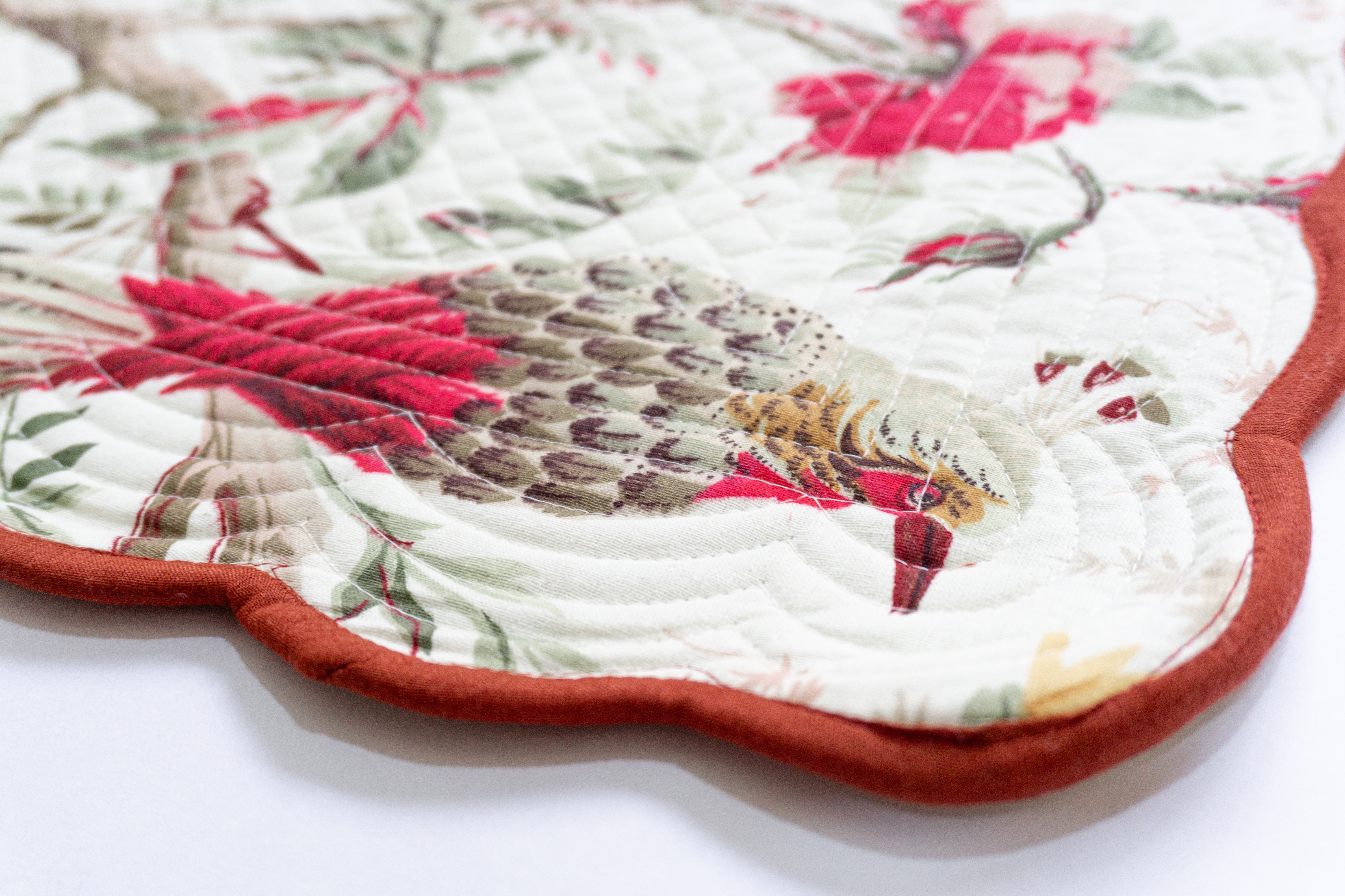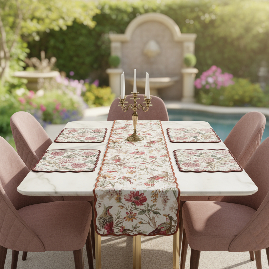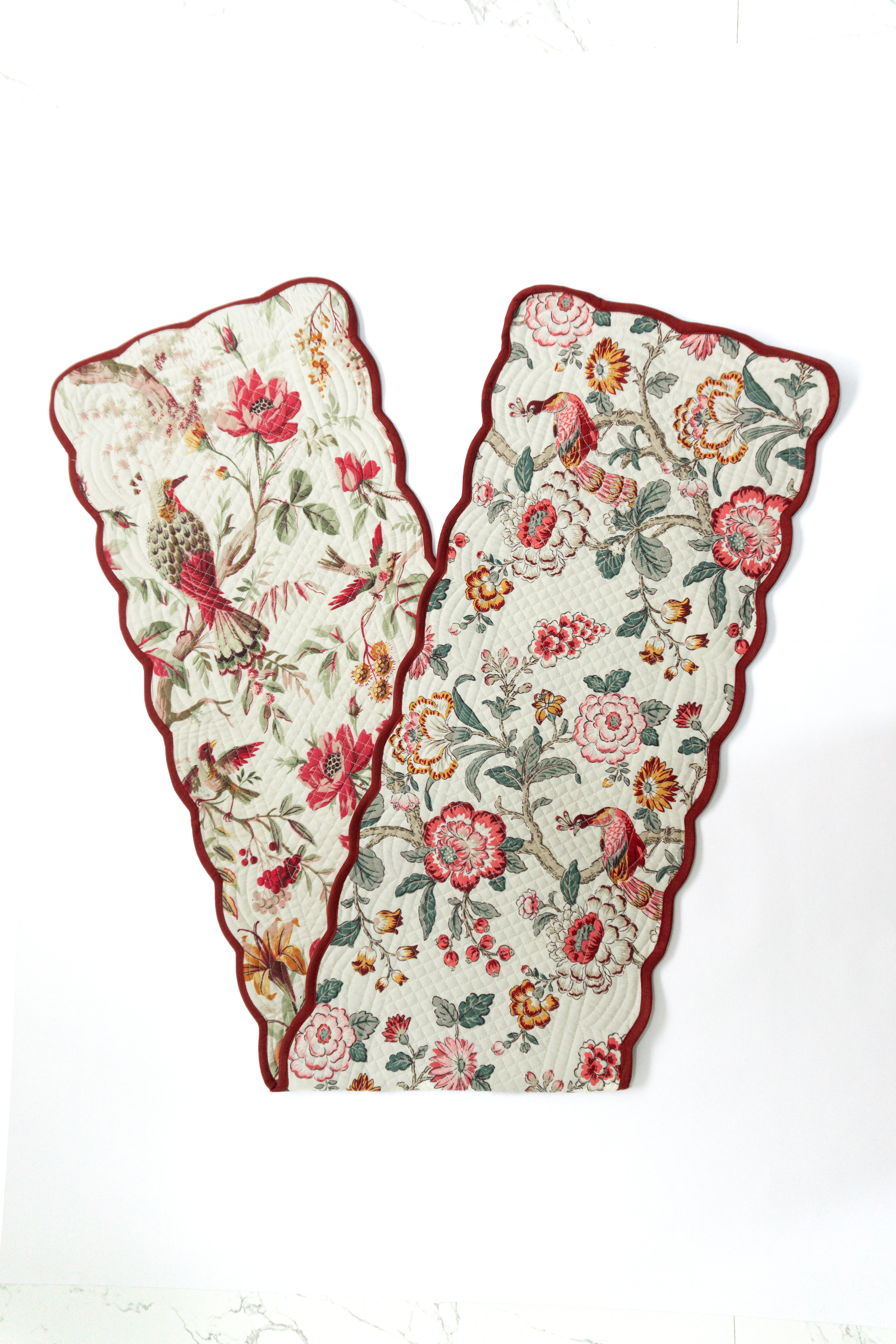 - Authentic Craftsmanship: Inspired by romantic French toile, vintage chinoiserie, and porcelain patterns, each Bloom Collection handcrafted runner features motifs such as paisley lilies, botanical roses, hydrangeas, leaves or birds, and is finished with a scalloped edge, showcasing timeless designs with contemporary elegance.